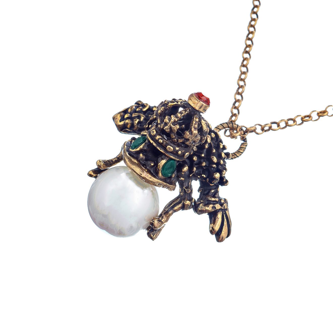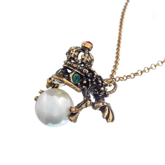 Показать все украшения брендаКолье лягушка с иск.изумрудом, гранатом и жемчужной бусиной