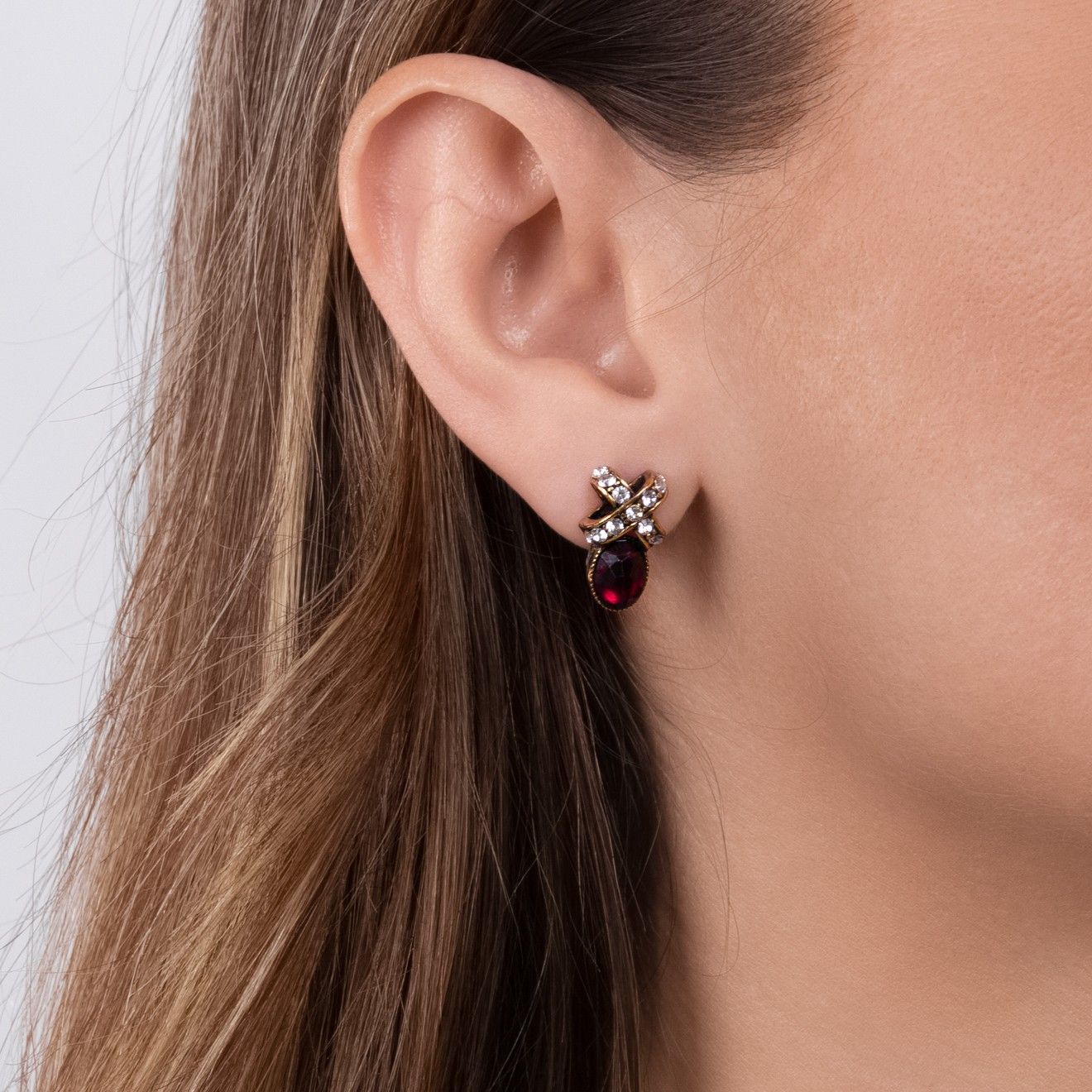 Серьги с гранатом и кристаллами Swarovski